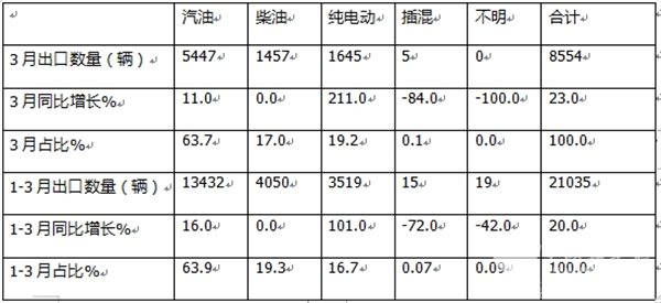 表1,2025年3月及前3月各动力客车出口数量及同比增长(数据来源:海关)