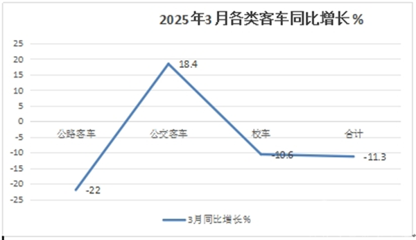 ---公交客车销量第二大,销量为3993辆,同比增长18.4%,是唯一同比增长的细分市场,当然领涨今年3月5米以上客车大盘;据分析主要是2025年老旧新能源公交车更新补贴新政驱动所致,使得公交用户更新新能源公交车的积极性提高,而去年同期公交车销量基数不高,因此给今年3月公交客车增长奠定基础;