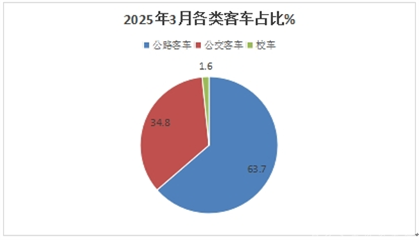 上图表可见,在2025年3月5米以上公路、公交、校车三大细分市场中: