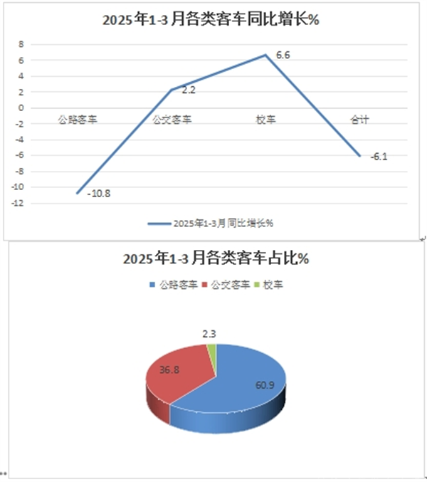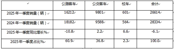 那么2025年3月及一季度公路、公交和校车三大细分市场销量有何主要特点?现予以简要分析。