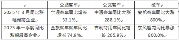 截图2,2025年一季度客车各细分市场同比增长最猛的车企(数据来源:慧眼看车)