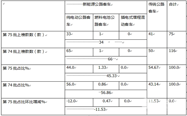 上表图说明,在第75批交通部上榜达标道路运输客车车型中: