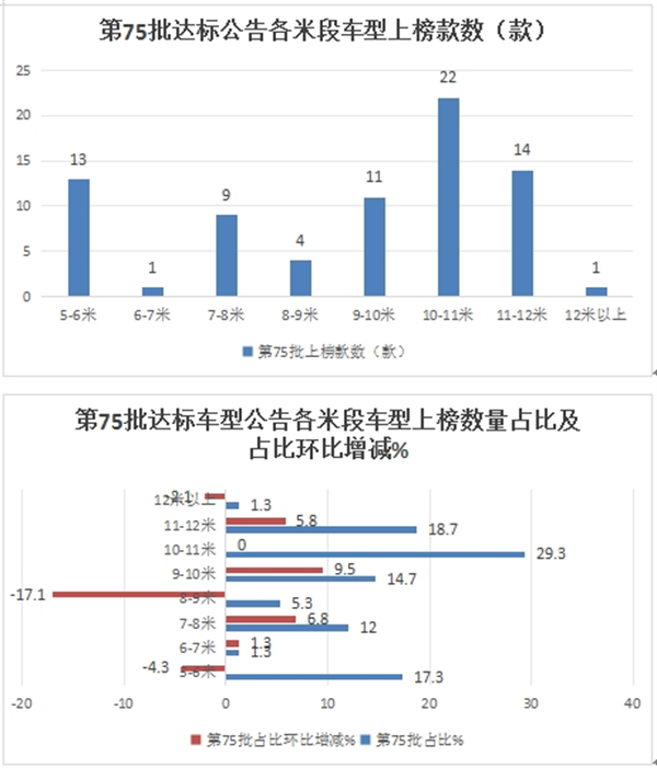 交通部第75批达标车型:上榜75款!10-11米领跑,9-10米领涨