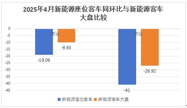 同时,2025年前4月大中型新能源座位客车累计同比增长14.98%,也跑输2025年前4月大中型新能源客车大盘17.52%的同比增速。