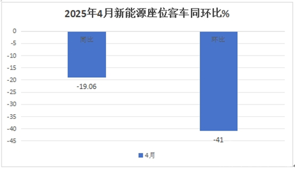 根据中国客车统计信息网数据,2025年4月我国大中型新能源座位客车销售675辆,同比下降19.06%,环比下降41%,呈现了同环比“双降”的态势,表现不佳。