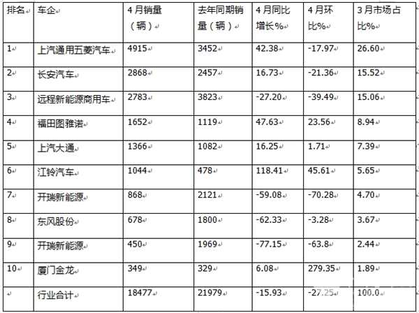 总之,今年4月新能源轻客市场同环比“双降”遇冷,“银四”落空!