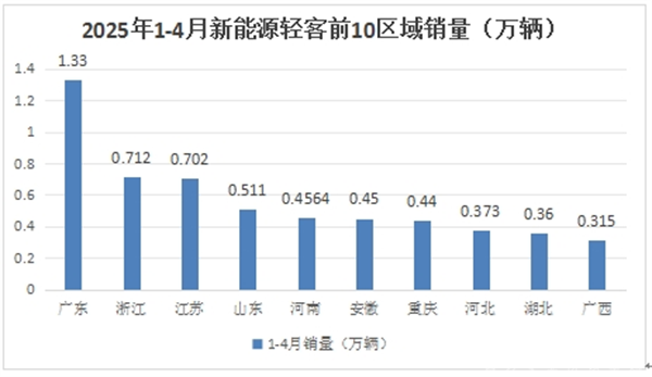 表3,根据终端上牌数据,2025年前4月新能源轻客累计销量前10个区域市场统计: