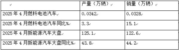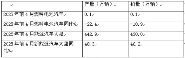 截图1,2025年4月燃料电池汽车及新能源汽车产销同比(数据来源:中汽协)