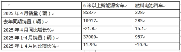 那么2025年4月及前4月燃料电池汽车及其中的燃料电池客车市场都有哪些特点?现进行扼要分析。