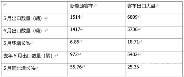 一是去年同期我国新能源客车出口基数相对较低,给今年5月新能源客车出口同比呈现较大幅度增长奠定了基础;