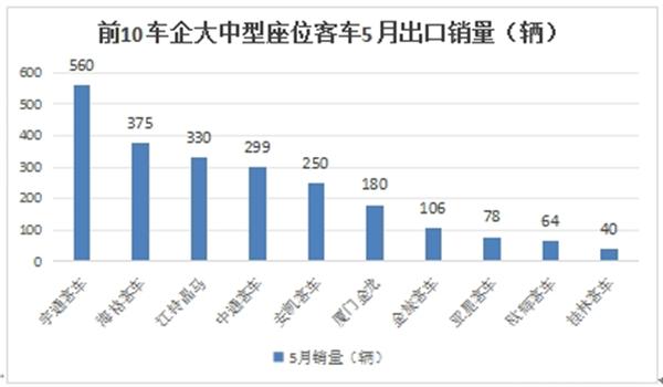 上表显示,在2025年5月我国大中型座位客车出口市场前10车企中: