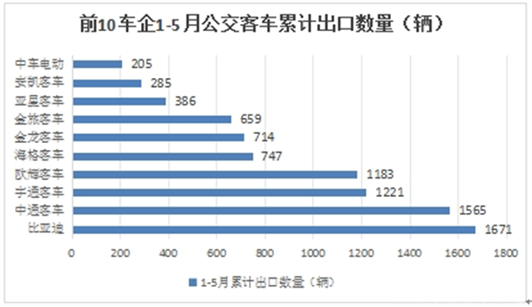 ---比亚迪客车累计出口1671辆,市场占比18.75%,领跑行业;