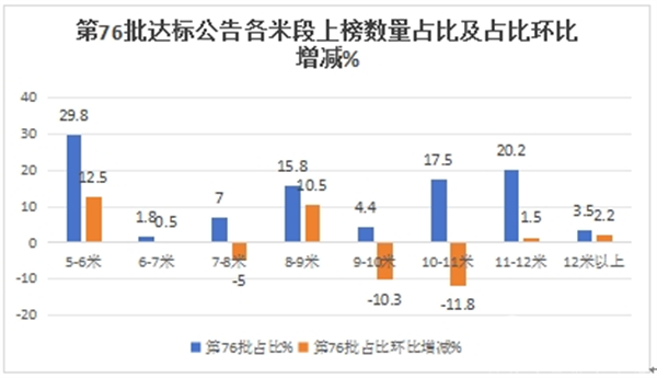 同时,在2025年5月交通部发布的第76批公路客车达标车型上榜公告中,5-6米小型公路客车累计上榜34款,是各个米段公路客车上榜数量最多的细分车型,其占比环比增长12.5个百分点,是占比环比增加最多的细分车型。这也有力的说明了小型公路客车很可能将成为下一步国内公路客车市场的一个新增长点。