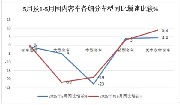 可见无论是2025年5月还是前5月,我国农村客车同比增速均领涨国内客车大盘。
