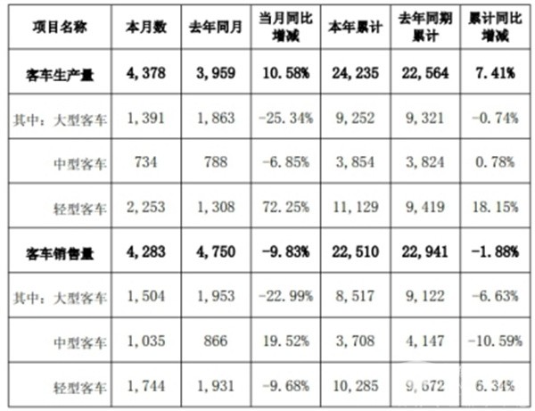 三、金龙汽车——6月销4283辆降9.83%,上半年累销22941辆,降1.88%