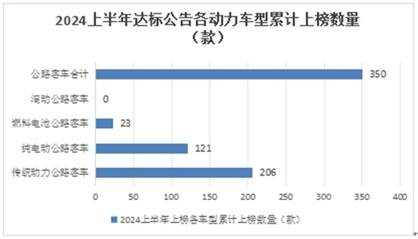 3、2024年上半年达标公告各动力车型累计上榜数量统计(数据来源:交通部)