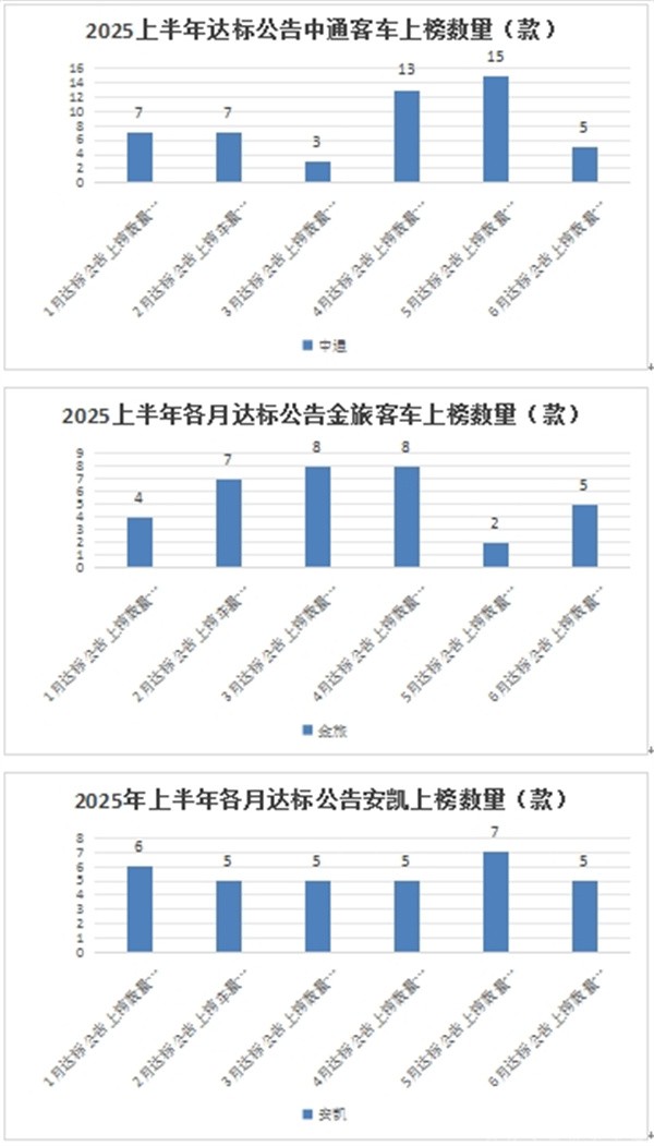 现将2025年上半年交通部发布的6个批次的公路客车达标车型公告的主要看点进行扼要的盘点分析。