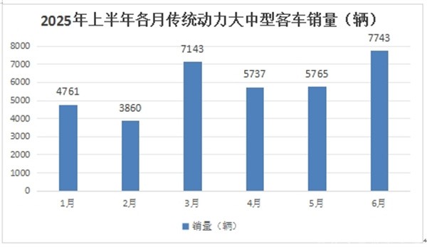 根据中国客车统计信息网数据,2025年上半年各月我国传统动力大中型客车销量统计如下: