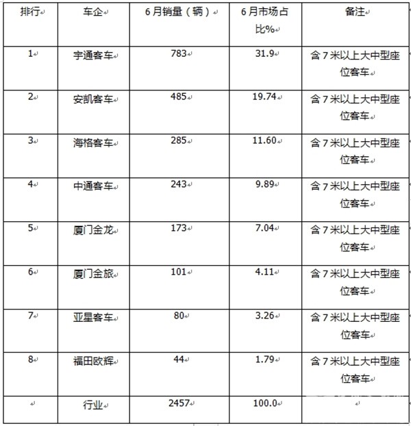 一、6月大中型座位客车排行:宇通夺冠,安凯跃升第二,海格列第三