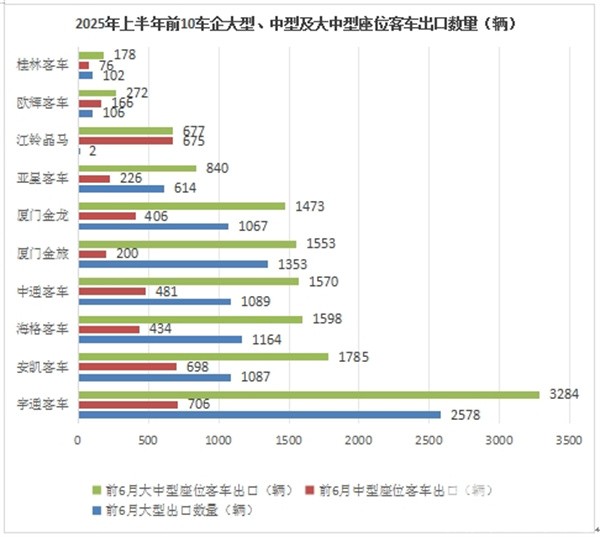2025上半年大中型座位客车及公交客车出口排行出炉