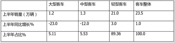 上半年客车终端市场:销23.5万辆增1% 轻客领涨 电动化率创史上新高