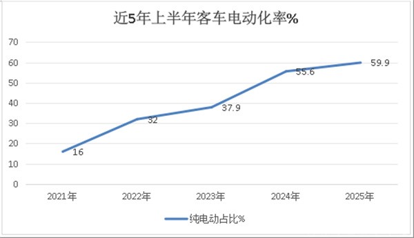 综上所述,2025年上半年国内客车终端市场中,销量同比中客领涨且电动化率提升最快。