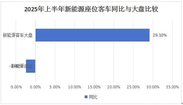 同时,2025年前6月大中型新能源座位客车累计同比小降2.49%,也跑输2025年前6月大中型新能源客车大盘29.10%的同比增速。