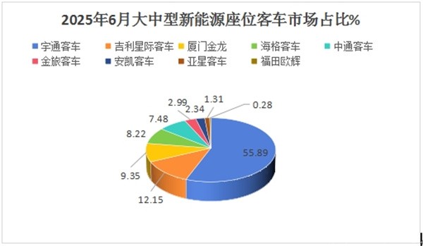 上图表可见,在2025年6月大中型新能源座位客车销量中: