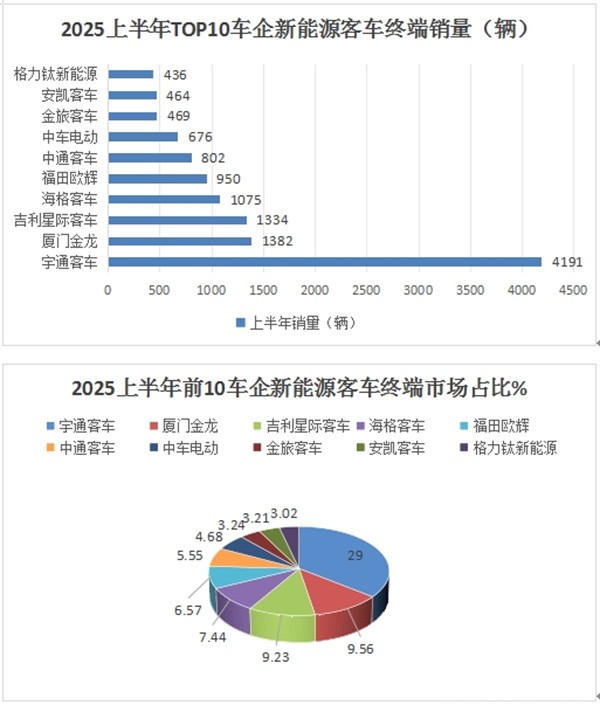 上图表显示,在2025年上半年新能源客车TOP10车企销量中: