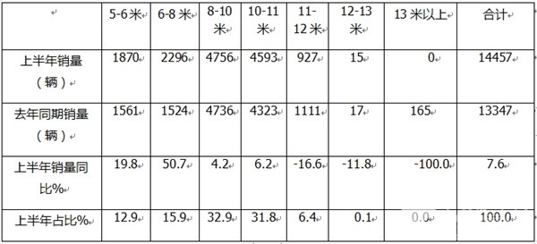 五、8-10米中型客车最畅销,6-8米领涨