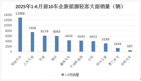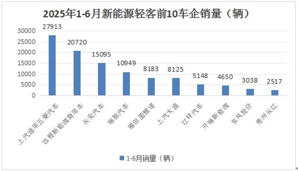 上图表显示,在2025年1-6月新能源轻客累计销量中: