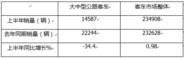 一是受高铁动车、航空、私家车等竞品的挤压,使得大中型公路客车市场空间受到严重挤压;同时由于旅游客运领域高投入、低回报的属性,在当前经济下行压力较大的大环境下,旅游客运公司目前对重资产的大中型公路客车投入的意愿不强;对当前替代或新增车辆,旅游客运公司以新购小型公路客车为主,挤压了部分大中型公路客车市场的空间。正是这些因素的综合作用,导致今年上半年国内大中型公路客车市场同比下降幅度较大(-34.4%)。