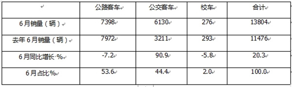 可见,无论是今年6月还是1-6月,公路客车均领跑客车三大细分市场;而公交客车均领涨,成为客车三大细分市场中最大的赢家。