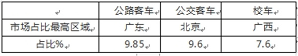 表5,根据终端上牌信息,2025年1-6月5米以上客车三大细分市场市场份额最高区域及占比统计: