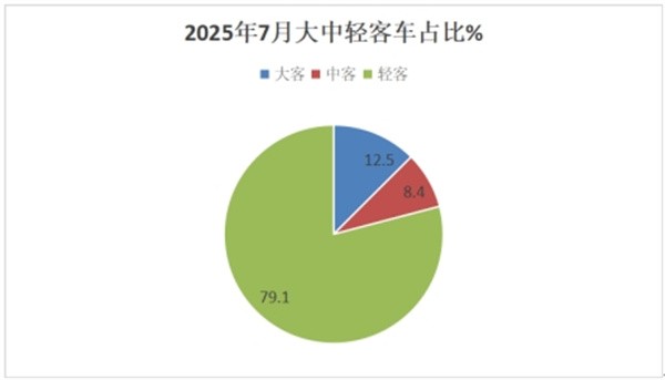 从占比看,大、中、轻客车占据2025年7月客车总销量的比例分别为12.5%、8.41%和79.1%;