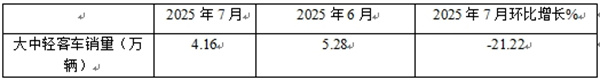 表1、2025年7月大中轻客车同比增长22.64%(数据来源:商用车专业委员会提供的批发信息):