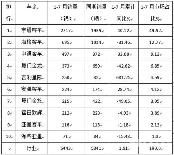 表1,根据中国客车统计信息网,2025年7月大中型新能源座位客车前10名车企销量排行及同环比: