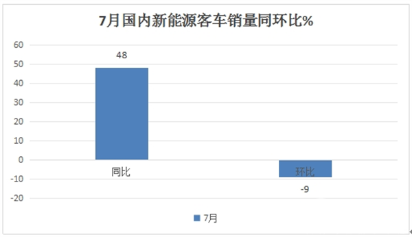 ---今年7月新能源客车终端市场环比小降9%,一方面是由于上月销量较高(6月是上半年的收官月份,为了冲刺年中业绩,部分车企在6月加大了集中上牌的力度,销量是今年上半年各月中第二高),给今年7月销量环比增长带来困难;