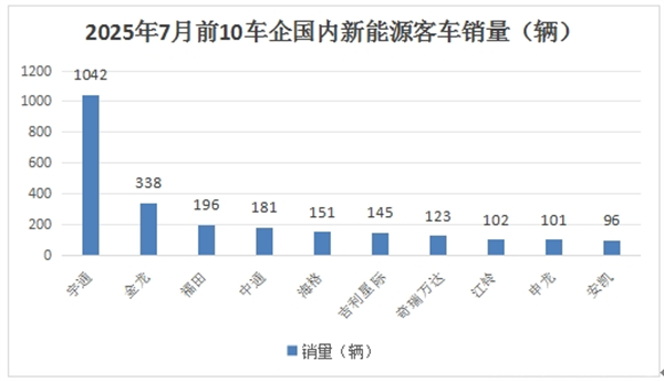 根据终端上牌数据,2025年7月新能源公路客车销量TOP10排行: