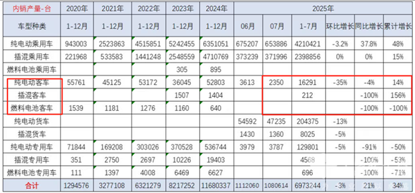 截图3,2025年7月及前7月各技术路线新能源客车装机量及同比(数据来源:中国汽车流通协会)