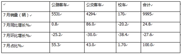 今年7月公路客车同比增速较小,据分析主要原因有: