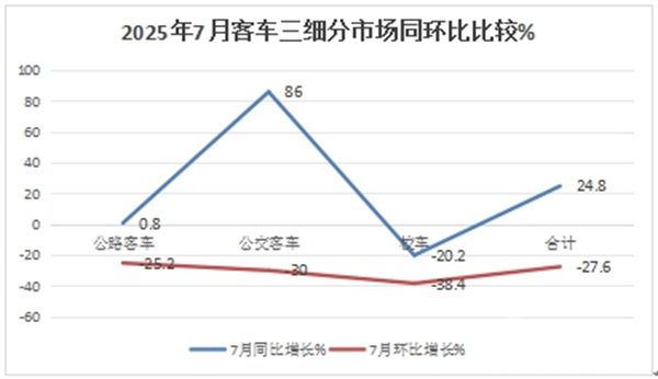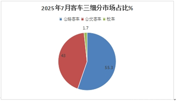 上图表可见,在2025年7月5米以上公路、公交、校车三大细分市场中: