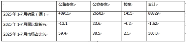 那么2025年7月及1-7月公路、公交和校车三大细分市场销量有何主要特点?现予以简要分析。