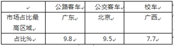 表5,根据终端上牌信息,2025年1-7月5米以上客车三大细分市场市场份额最高区域及占比统计: