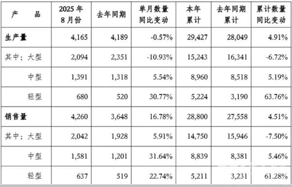 快报显示,2025年8月份,宇通客车销售各类车型4260辆,同比增长16.78%。