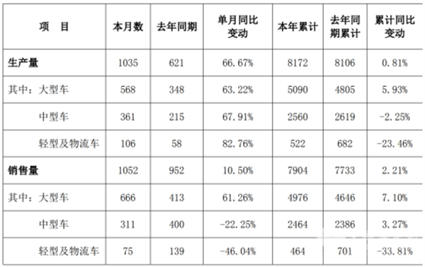 1、8月:大型客车同比大涨61.26%;中、轻型均下降