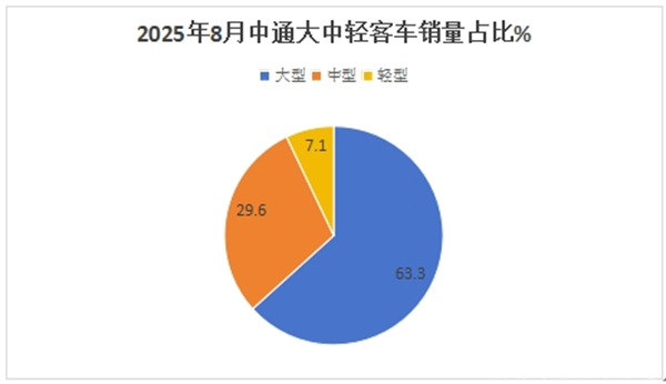 ---从产品销售结构来看,2025年8月份,中通大型客车销量最多(占比63.3%)领跑各细分市场;是中通客车市场的绝对主体部分;中型客车销量占比29.6%居第二;轻型及物流车占比7.1%,居最少。