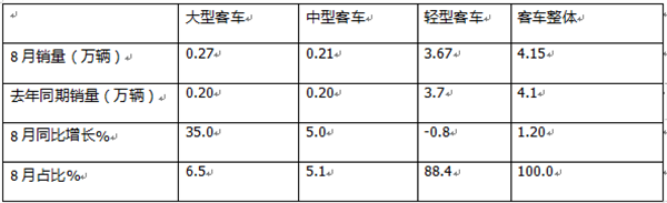 特点一、8月:大中客车同比增长、大客领涨;轻客唯一下降