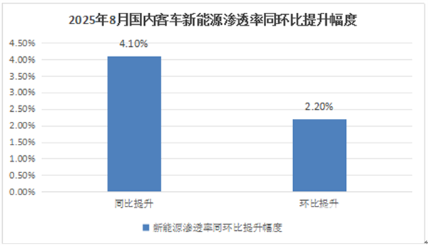 根据截图1数据可知,2025年8月国内客车新能源渗透为63.2%,环比今年上月的61%提升了2.2个百分点,比2024年同期的59.1%提升了4.1个百分点,呈现了同环比“双提升”的发展态势,说明今年8国内客车新能源进程正在加速推进。