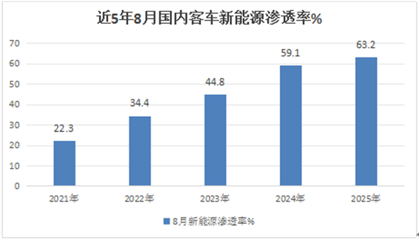 正是上述几个因素的叠加作用,导致2025年8月轻客新能源化率居各类客车最高。